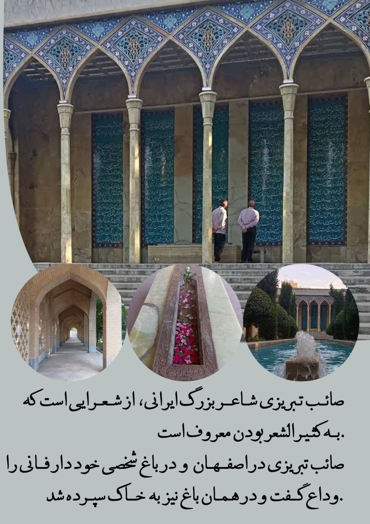 آرامگاه صائب تبریزی واقع در اصفهان یکی از مکان های زیبا و دیدنی است.