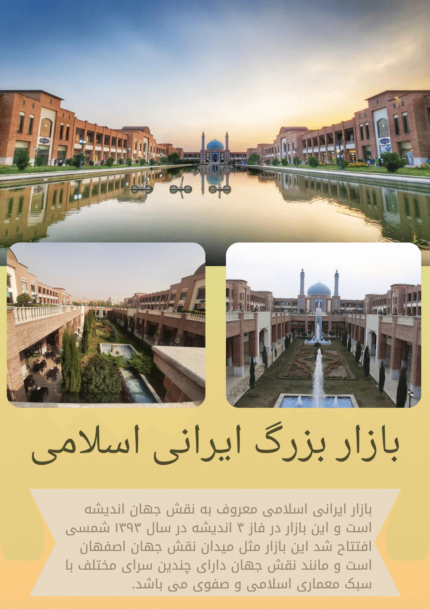 بازار ایرانی اسلامی معروف به نقش جهان اندیشه است و این بازار در فاز ۴ اندیشه در سال ۱۳۹۳شمسی افتتاح شد این بازار مثل میدان نقش جهان اصفهان است و مانند نقش جهان دارای چندین سرای مختلف با سبک معماری اسلامی و صفوی می باشد