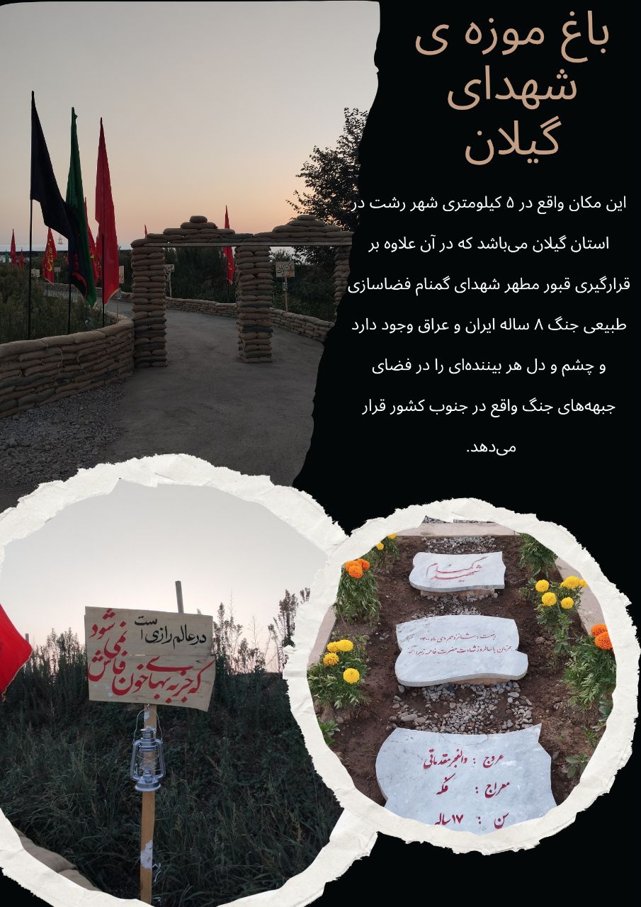 این باغ موزه در فضای باز دشت قرار داشته و بازسازی مناطق جنگی ۸ سال دفاع مقدس میباشد همچنین مزار چند شهید گمنام نیز در مرکز این موزه قرار دارد.