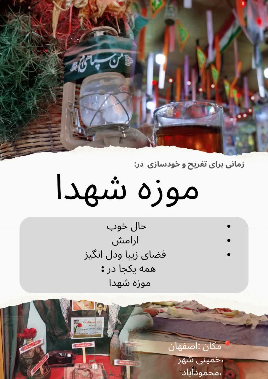 باغ موزه شهدا واقع در استان اصفهان شهرستان خمینی شهر روستای محمود آباد میباشد