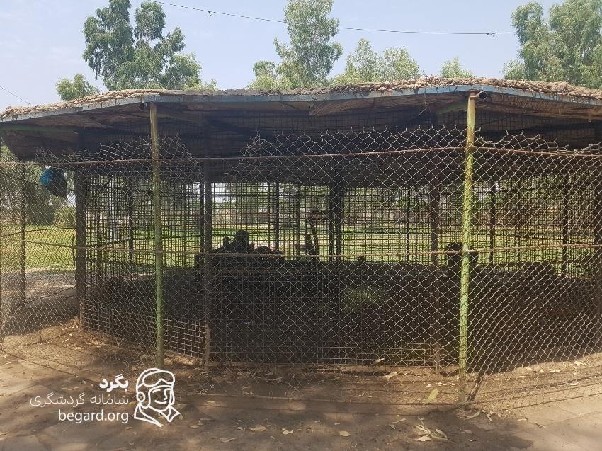 . این باغ وحش بزرگترین باغ وحش استان خوزستان است و کاملا درون شهر قرار دارد و دسترسی به آن راحت است. این باغ وحش گونه های مختلف پرندگان مانند عقاب، کرکس، طاووس و سایر گونه ها مانند روباه، گرگ، خرس، شتر، میمون و غیره نگهداری می شوند. یکی از بهترین قسمتهای بازدید قفس میمون ها باشد که به نوعی با بازدید کننده ارتباط برقرار کرده و با شیطنت آنها را سرگرم می کنند.