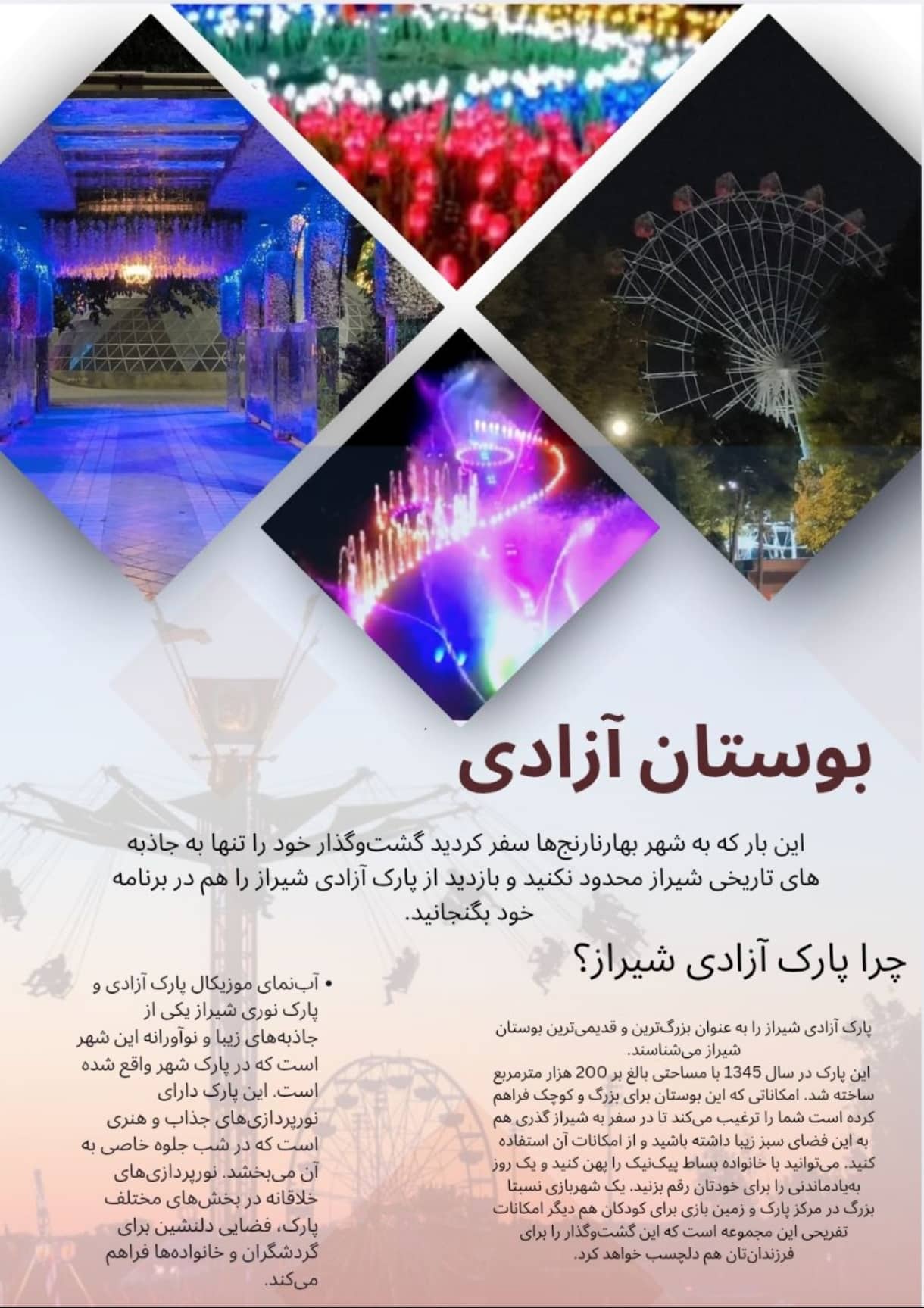 این بار که به شهر بهارنارنجها سفر کردید گشتوگذار خود را تنها به جاذبه های تاریخی شیراز محدود نکنید و بازدید از پارک آزادی شیراز را هم در برنامه خود بگنجانید.