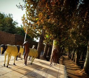 همچنین مجسمه ها و المان هایی که نمادی از پیشینه و اصالت شهرستان نجف آباد است، در بوستان وجود دارد.