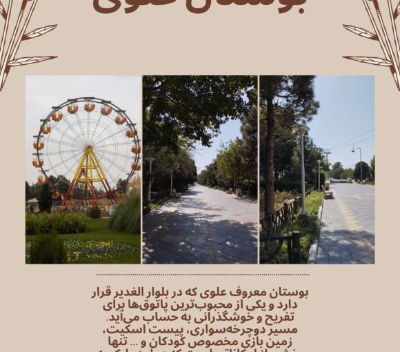 بوستان معروف علوی که در بلوار الغدیر قرار دارد و یکی از محبوبترین پاتوقها برای تفریح و خوشگذرانی به حساب میآید. مسیر دوچرخهسواری، پیست اسکیت، زمین بازی مخصوص کودکان و … تنها بخشی از امکاناتی است که در این پارک به آنها دسترسی خواهید داشت. همچنین وجود مسجد، آلاچیق برای برپایی پیکنیک، تجهیزات ورزشی، بوفه و … هم بخش دیگری از امکاناتی هستند که برای تفریح و خوشگذرانی شما در بوستان علوی قرار دارند.