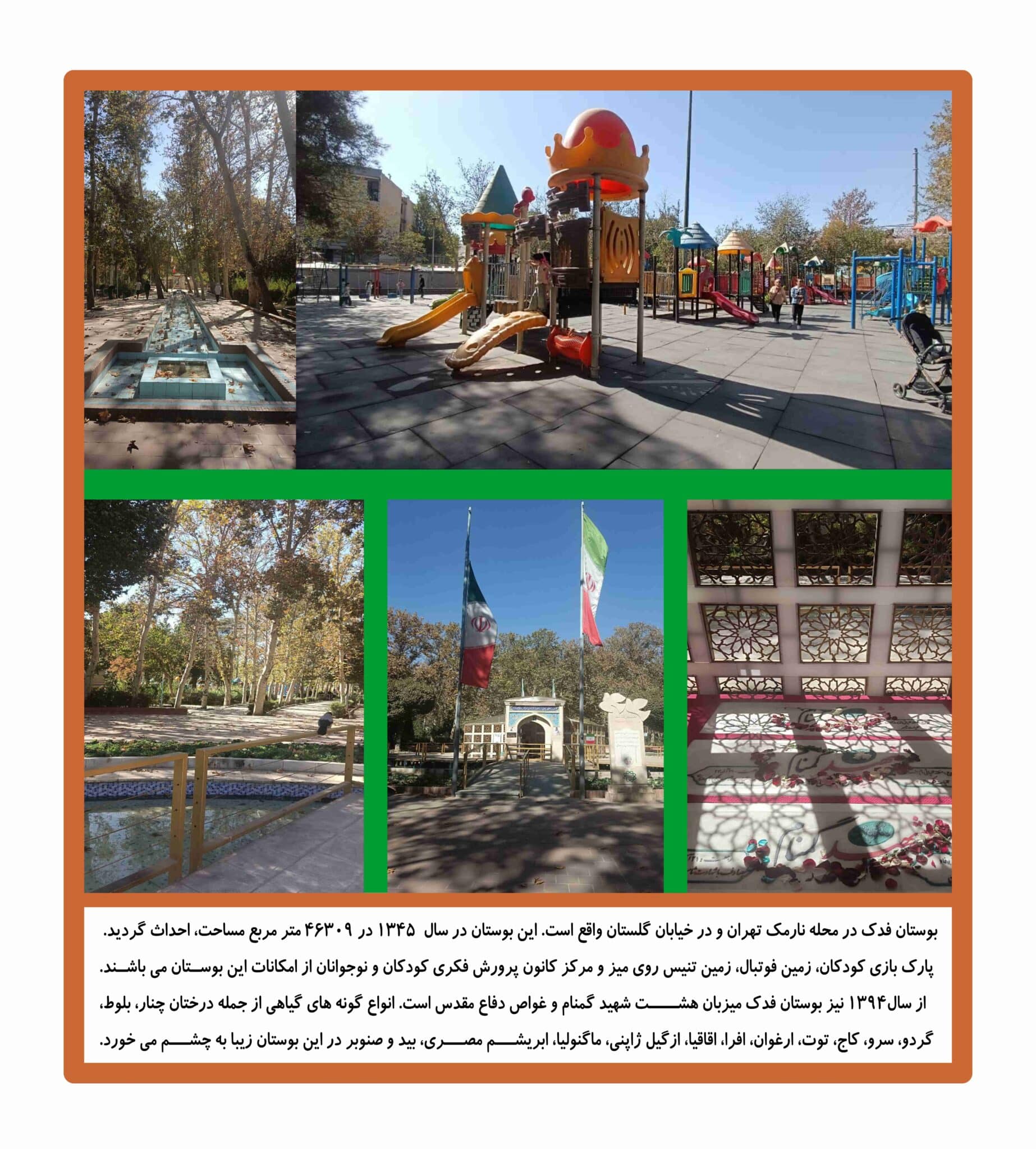 بوستان فدک در محله نارمک تهران و در خیابان گلستان واقع است. این بوستان در سال ۱۳۴۵ در ۴۶۳۰۹ متر مربع مساحت، احداث گردید.