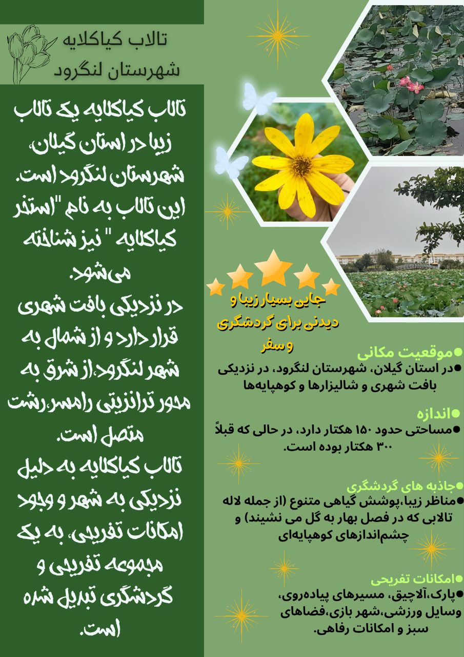 این تالاب به نام “استخر کیاکلایه ” نیز شناخته میشود.