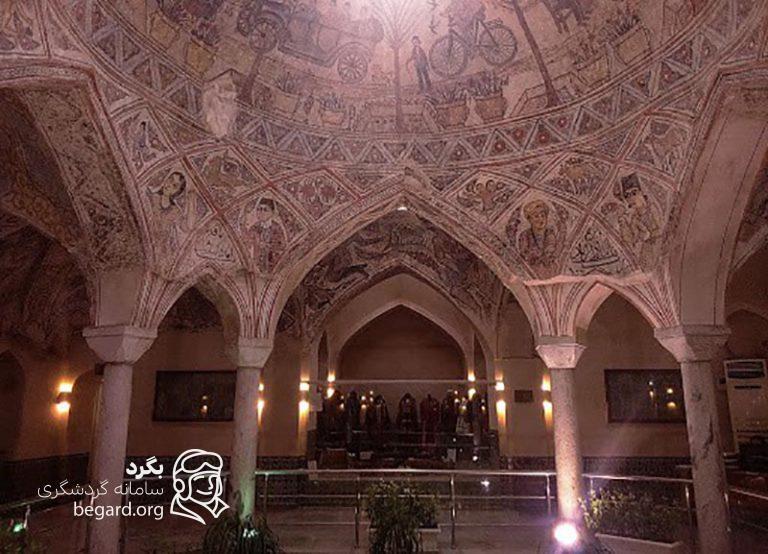این حمام یکی از حمام های معروف ایران است که قدمتش به زمان شاه عباس صفوی برمی گردد و معماری خارق العاده آن حکایت از شکوه و عظمت معماری اصیل ایرانی دارد. حمام، درست در کنار حرم امام رضا، مسجد شاه و بازار فرش فروش های مشهد قرار دارد و بنابراین برای بازدید از این موزه تنها کافیست بعد یا قبل از زیارت حرم امام رضا، ساعتی را به آن اختصاص دهید. امروزه این حمام به موزه مردم شناسی مشهد بدل شده و در نتیجه می توانید در کنار حمام، از مجموعه ای از اشیا، وسایل، پوشاک و عکس های قدیمی شهر نیز دیدن کنید.