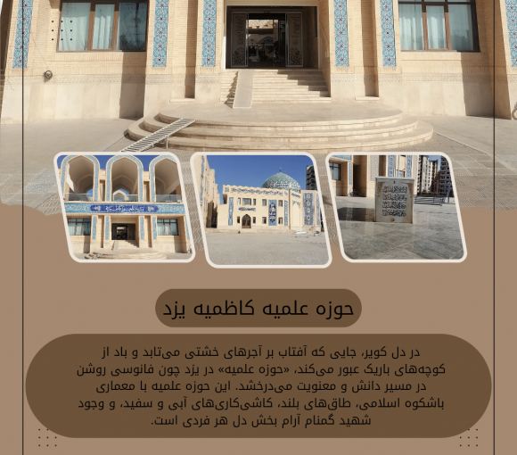 در دل کویر، جایی که آفتاب بر آجرهای خشتی می‌تابد و باد از کوچه‌های باریک عبور می‌کند، «حوزه علمیه» در یزد چون فانوسی روشن در مسیر دانش و معنویت می‌درخشد. این حوزه علمیه با معماری باشکوه اسلامی، طاق‌های بلند، کاشی‌کاری‌های آبی و سفید، و وجود شهید گمنام آرام بخش دل هر فردی است.