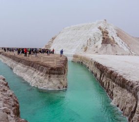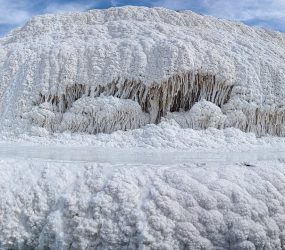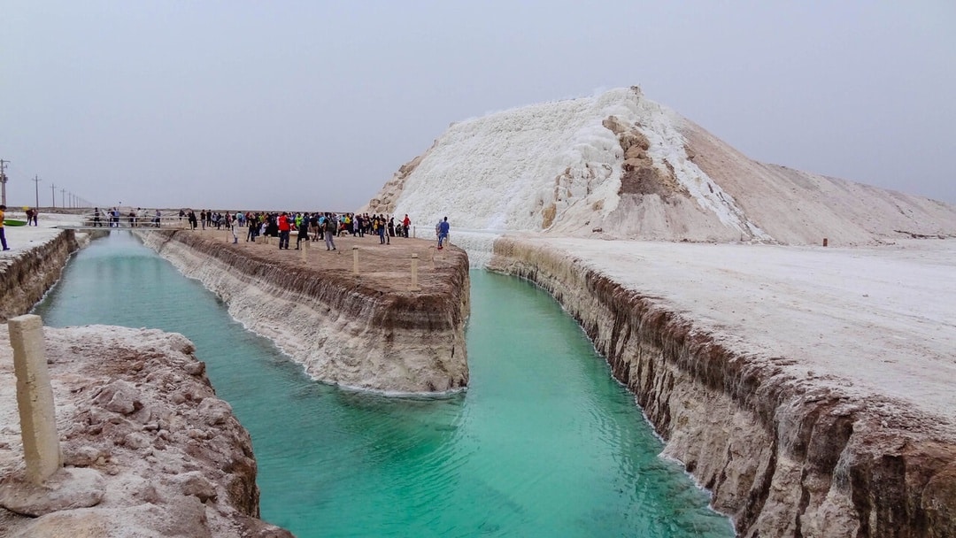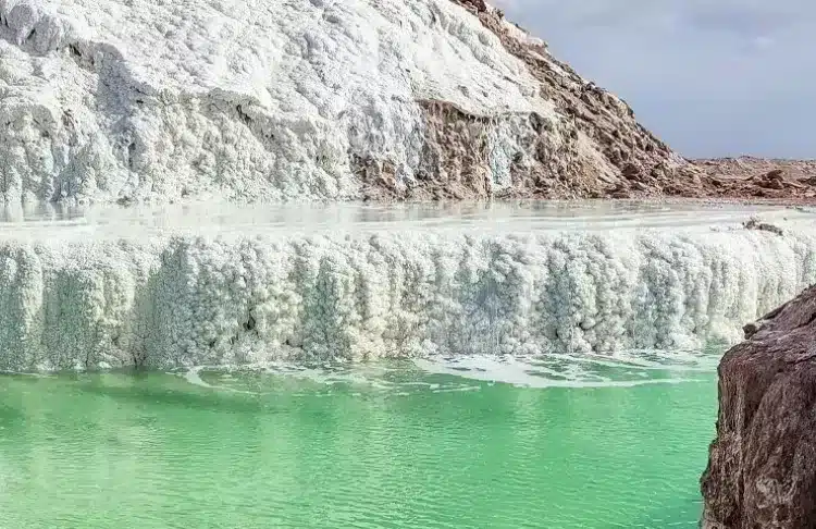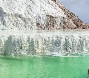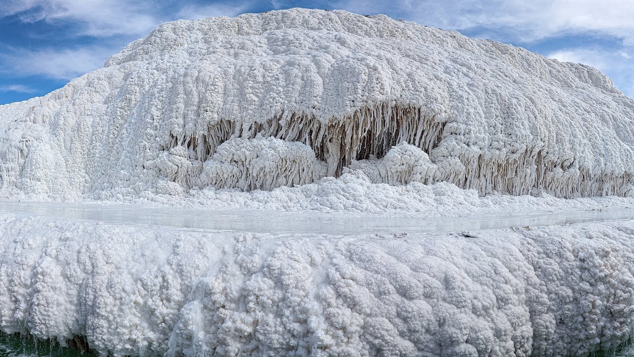 آبشار نمکی پتاس در نتیجه تبخیر آب دریاچه نمک پتاس ایجاد شده است.