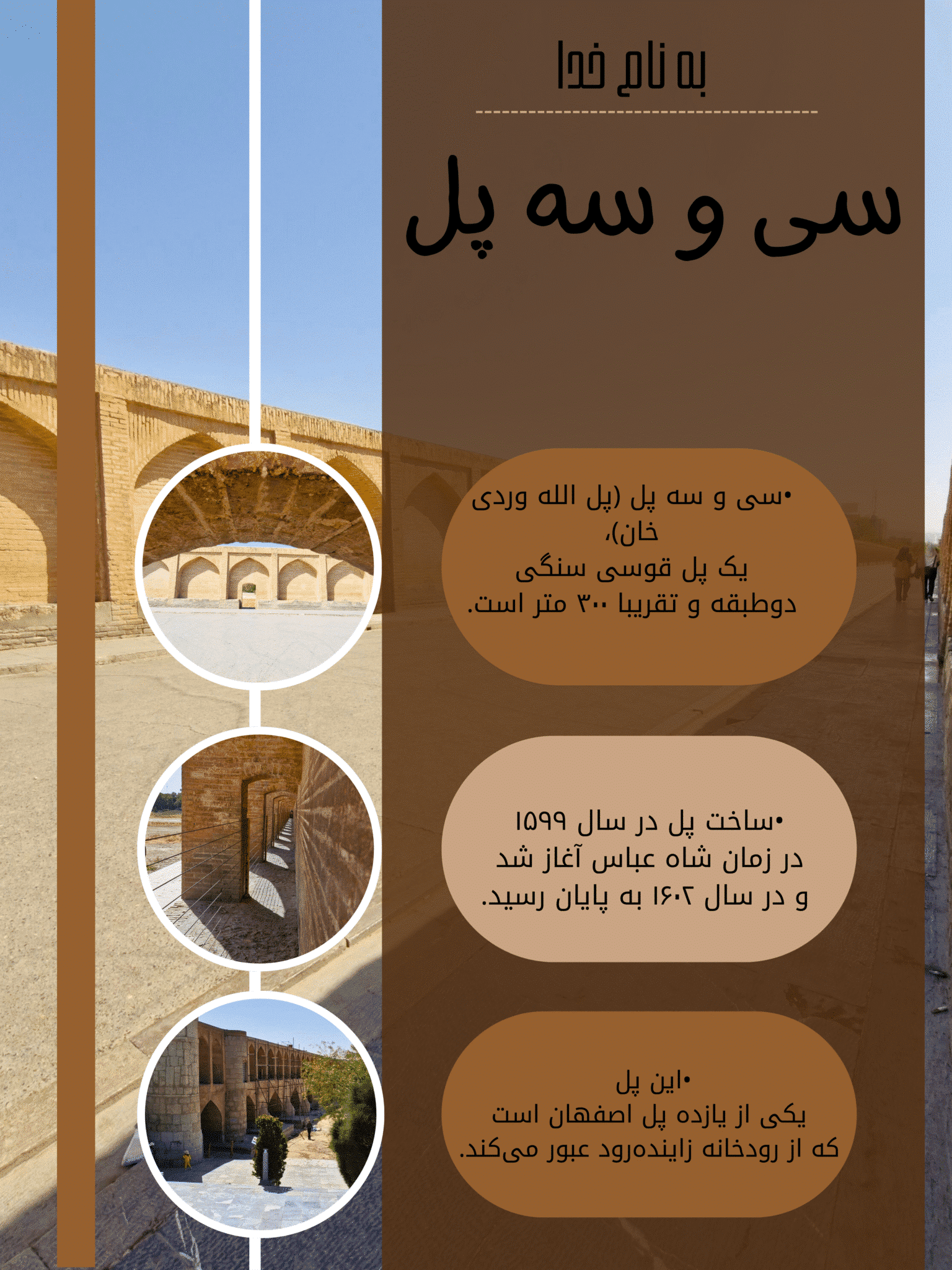 سی و سه پل 33 Pol Bridge, Si-o-Se Pol Bridge, Barberry garden, District 5, Isfahan, بخش مرکزی شهرستان اصفهان, Isfahan County, Isfahan Province, 81736-95814, Iran گردشگری خانواده 2 هفته پیش جزئیات نوع مرکز پلهای تاریخی درباره این مرکز این پل یکی از یازده پل اصفهان است که از رودخانه زایندهرود عبور میکند. نمایش بیشتر نمایش کمتر جزئیات دسته مرکز: گردشگری خانواده موقعیت مکانی 33 Pol Bridge, Si-o-Se Pol Bridge, Barberry garden, District 5, Isfahan, بخش مرکزی شهرستان اصفهان, Isfahan County, Isfahan Province, 81736-95814, Iran نمای نقشه امکانات بازدید شبانهروزی ورودی رایگان Google Nearby Places اولین نفری باشید که برای “سی و سه پل” نظر می دهد لغو پاسخ امتیاز نام ایمیل ذخیره نام، ایمیل و وبسایت من در مرورگر برای زمانی که دوباره دیدگاهی مینویسم. نقد و بررسی مراکز مرتبط پل مارنان اصفهان خیابان خیام پل مارنان گردشگری خانواده مسجد چهار پادشاهان استان گیلان شهر لاهیجان روبروی مسجد جامع گردشگری خانواده رودخانه لاسبید رودخانه گردشگری،طبیعی لاسبید در شهرستان بهبهان و بخش مرکزی واقع در دهستان حومه روستای لاسبید می باشد 2 مدت بازدید 100 نفر گردشگری خانواده