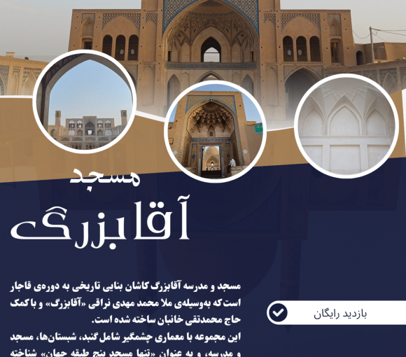 مسجد و مدرسه آقابزرگ کاشان یکی از شاهکارهای معماری دوره قاجار است که در قرن سیزدهم هجری ساخته شد. این بنا به دستور ملا مهدی نراقی دوم برای برگزاری نماز جماعت و تدریس علوم دینی ساخته شده است. مسجد دارای گنبدی بزرگ، منارههایی زیبا و حیاطی با حوض مرکزی است که جلوهای خاص به آن داده است. معماری آن بهگونهای است که تهویه طبیعی و نور کافی در همه فضاها برقرار است. این مسجد نمادی از تلفیق هنر، دین و علم در تاریخ کاشان به شمار میرود.