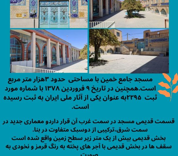 مسجد جامع خمین مربوط به دوره قاجار است و در خمین، در همسایگی بازار واقع شده و این اثر در تاریخ ۹ فروردین ۱۳۷۸ با شمارهٔ ثبت ۲۲۹۵ بهعنوان یکی از آثار ملی ایران به ثبت رسیده است.