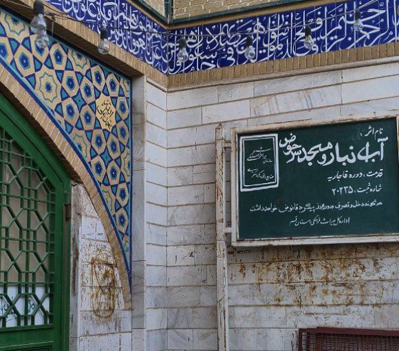 این مسجد همزمان با یک آبانبار سنتی ساخته شده و روی آن قرار دارد.