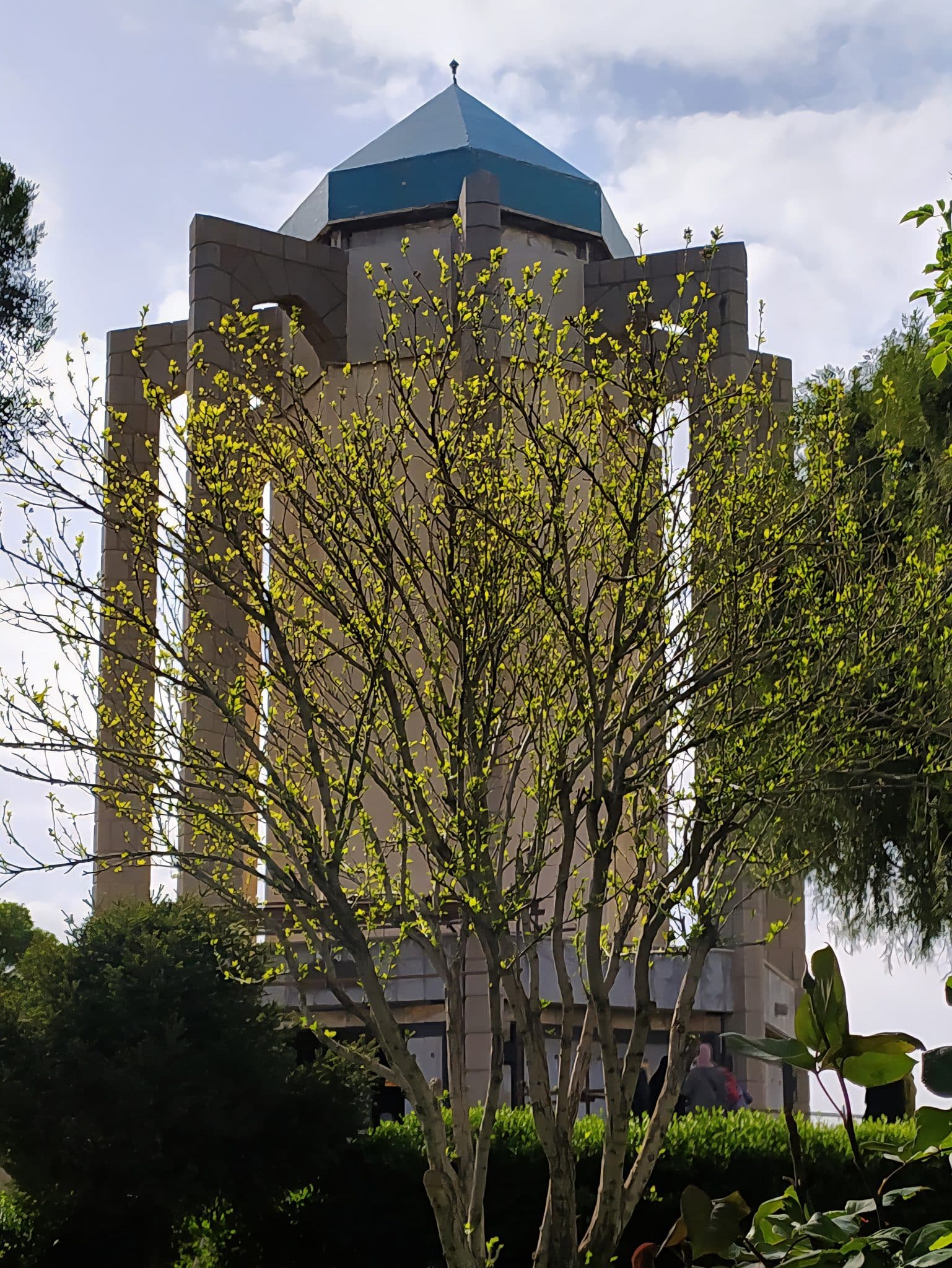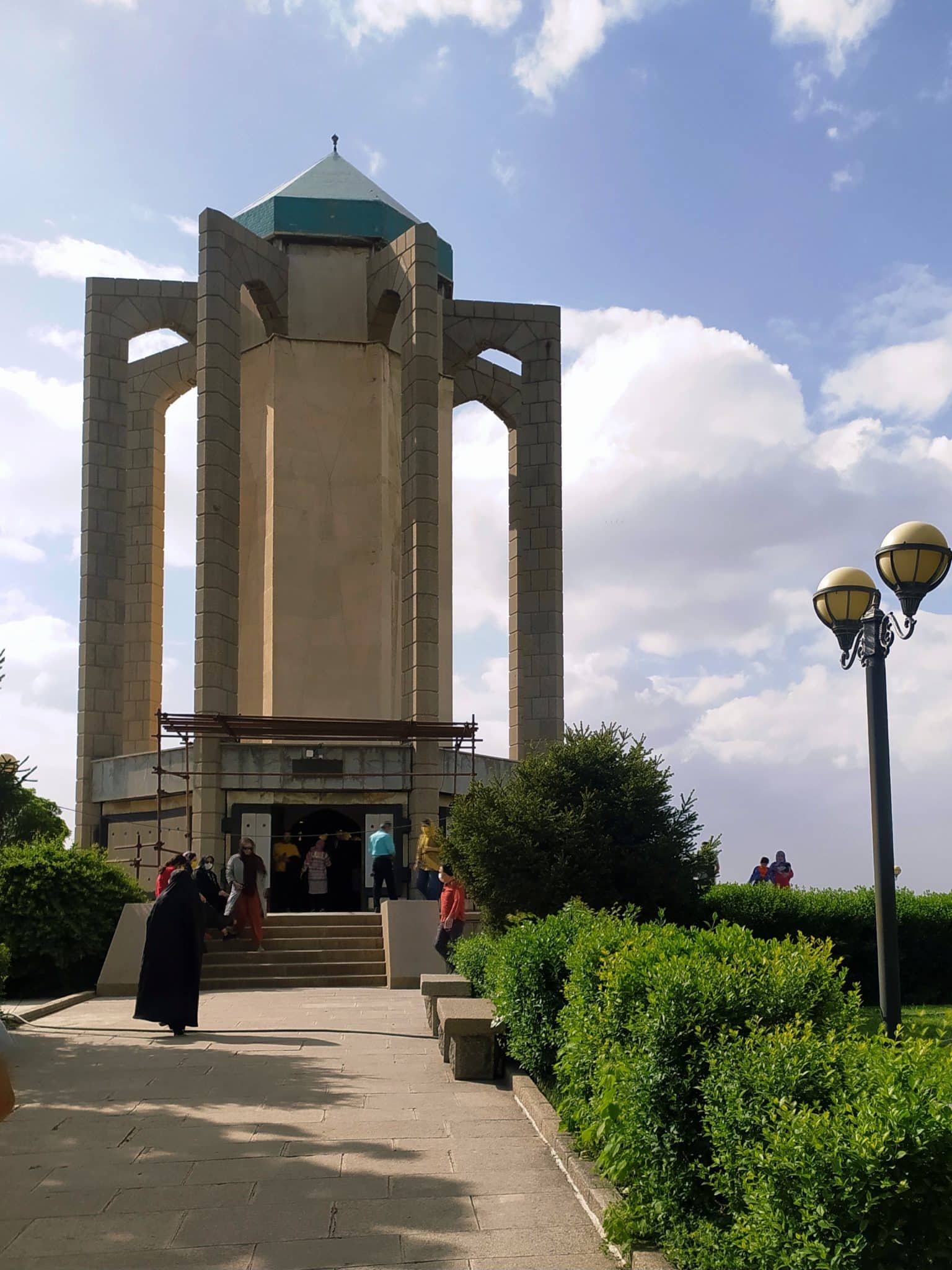 ستونهای هشتگانه برج، قطعه سنگ مزار، کف و پلههای آرامگاه از سنگ گرانیت حجاری شدهاست و بنای اصلی نیز به ابعاد۱۰ × ۱۰ متر با مجموعهای از منشورها پوشیده شده و دارای مدخلهای ورودی و منفذهای نور است.