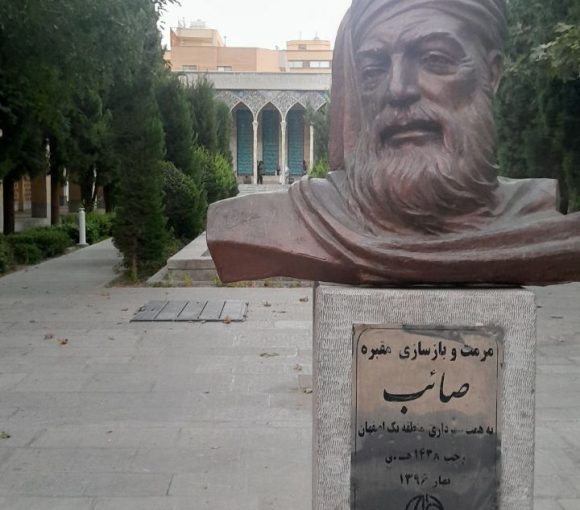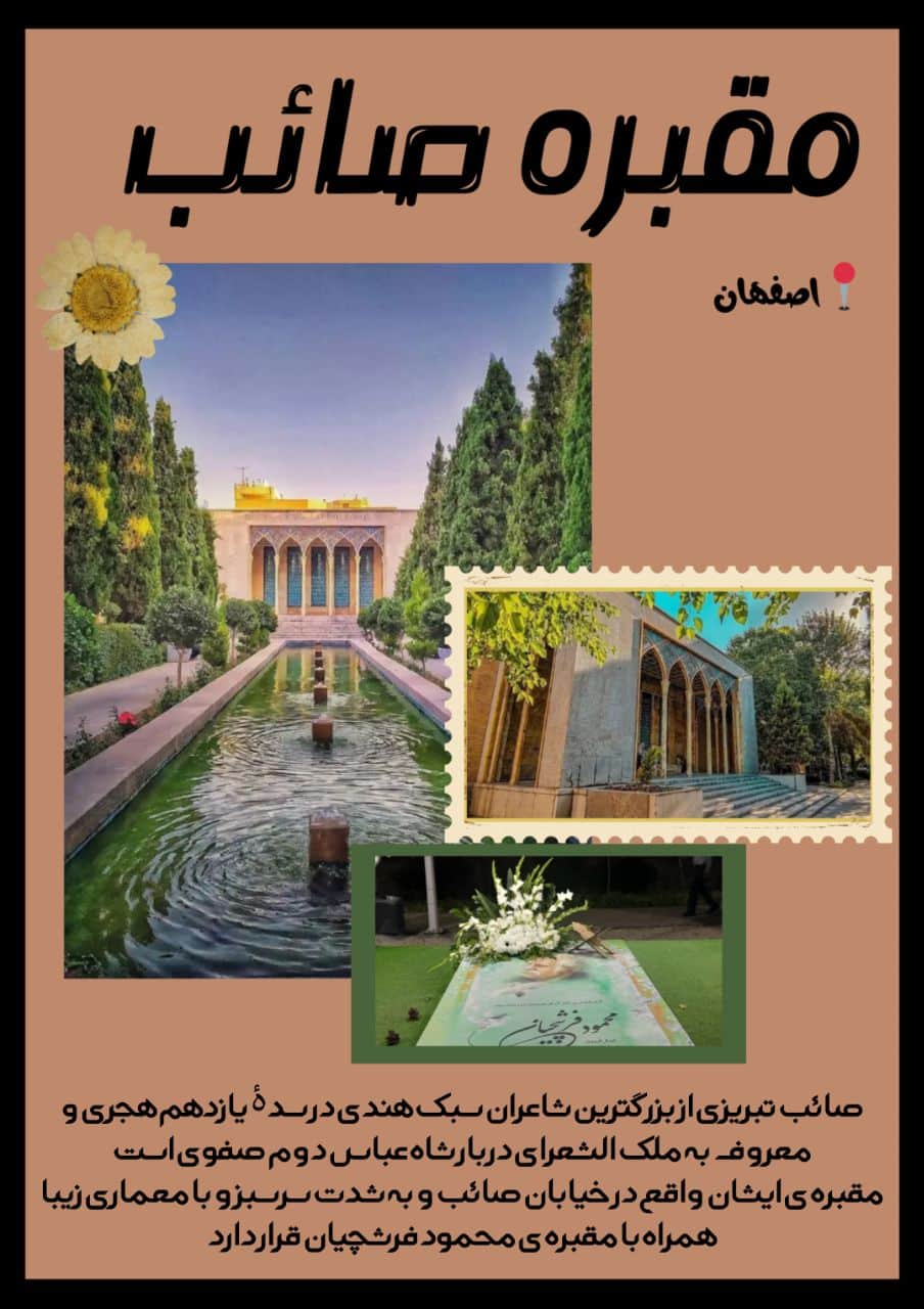 مزار شاعر بزرگ دوران صفوی صائب تبریزی در اصفهان که در کنار این مکان مزار نقاش عزیز و بزرگ جناب آقای فرشچیان قرار دارد