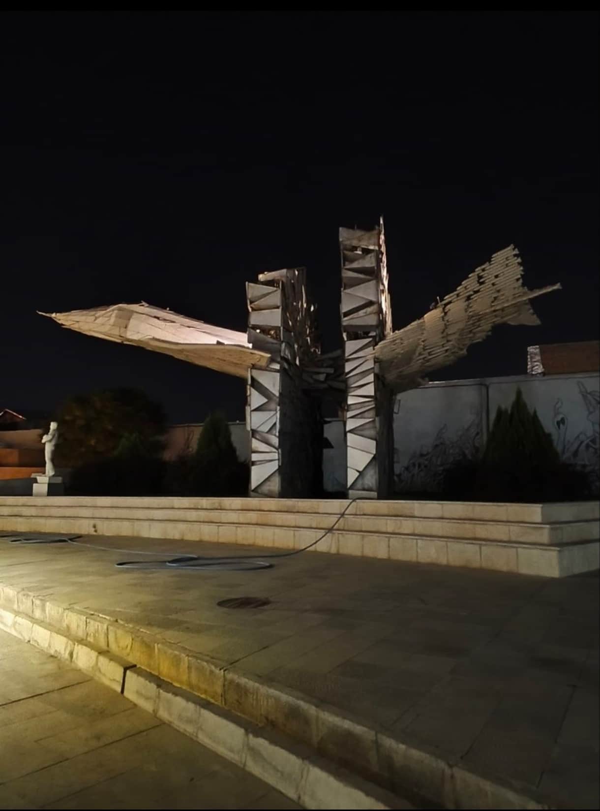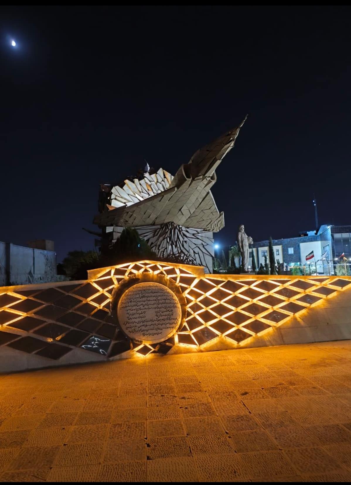این پلاکها در قامت ۱۵ سرو به یکدیگر بافته شده یادمان ۱۵۰۰۰شهید استان فارس و دور تا دور منقش به گل و مرغ است که به دست هنرمندان صنایع دستی شیراز به مثابه نمادی از وطن نگارگری شده است و در پایین آن نیز حوض آبی تعبیه شده است که سمبل اشک چشم مادران شهدا می باشد.