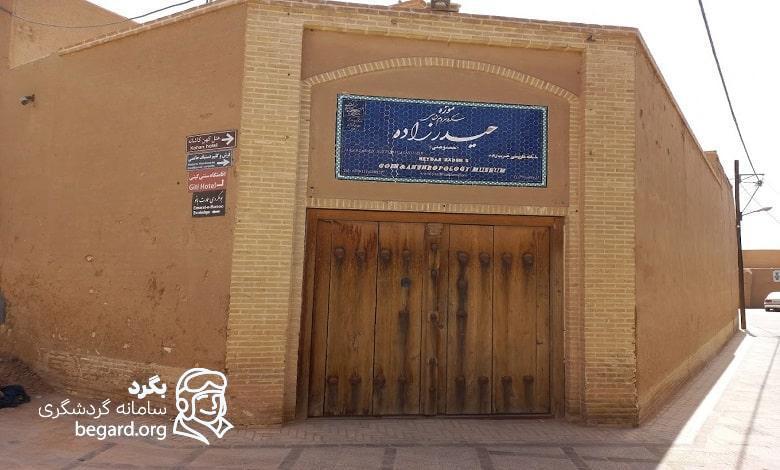 موزه سکه و مردمشناسی حیدرزاده یزد، در خانه عرب زاده محله فهادان _یکی از قدیمیترین محلههای شهر یزد_ قرار دارد؛ خانهای ۸۰۰ مترمربعی و قجری که امروزه پس از مالکیت میراث فرهنگی، بازسازی شده و به موزه حیدرزاده تغییر کاربری داده است. آثار این موزه، طی سالهای ۱۳۳۵ تا ۱۳۸۳ هـ.ش و با تلاش و همت «استاد حسین حیدرزاده» از اساتید برجسته علم سکهشناسی جمعآوری گردیده و در ۱۰ سالن با یک تالار بزرگ در بین اتاقهای ۳ و ۵ دری، به نمایش گذاشته شده است.