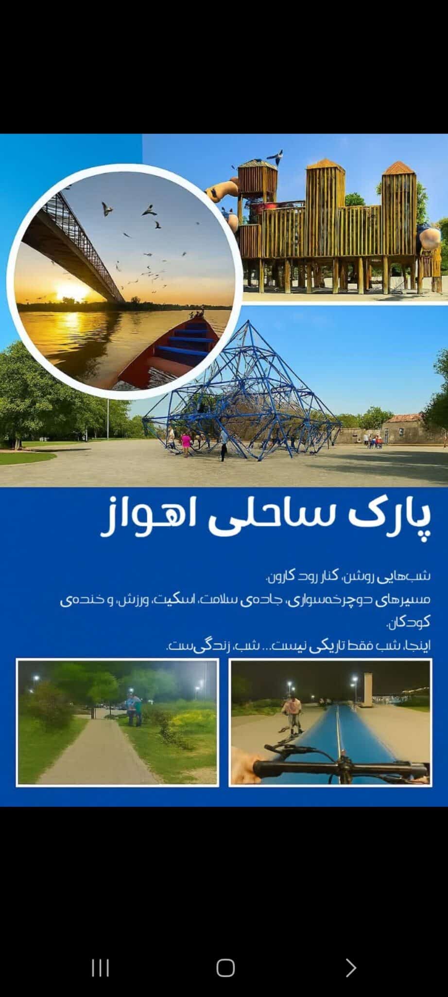 پارک ساحلی اهواز، در مسیر رود کارون ، مناسب برای شبنشینی و محیط خانواده