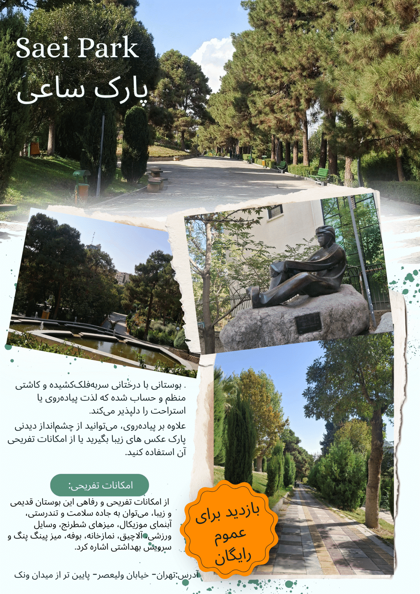 بوستانی با درختانی سربهفلککشیده و کاشتی منظم و حساب شده که لذت پیادهروی یا استراحت را دلپذیر میکند.