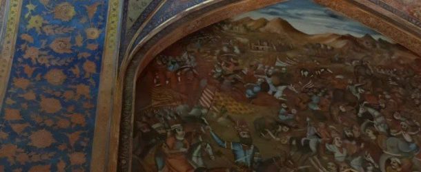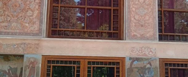 عمارت چهلستون که عمارت اصلی درون باغ است، بر اساس کتیبهای که در سال ۱۳۲۷ شمسی از زیر گچ اندودهای بنا آشکار شد[۴] در سال ۱۰۵۷ هجری قمری ساخته شده است و تا آن زمان تاریخ ساختمان آن را به درستی نمیدانستند.[۵]