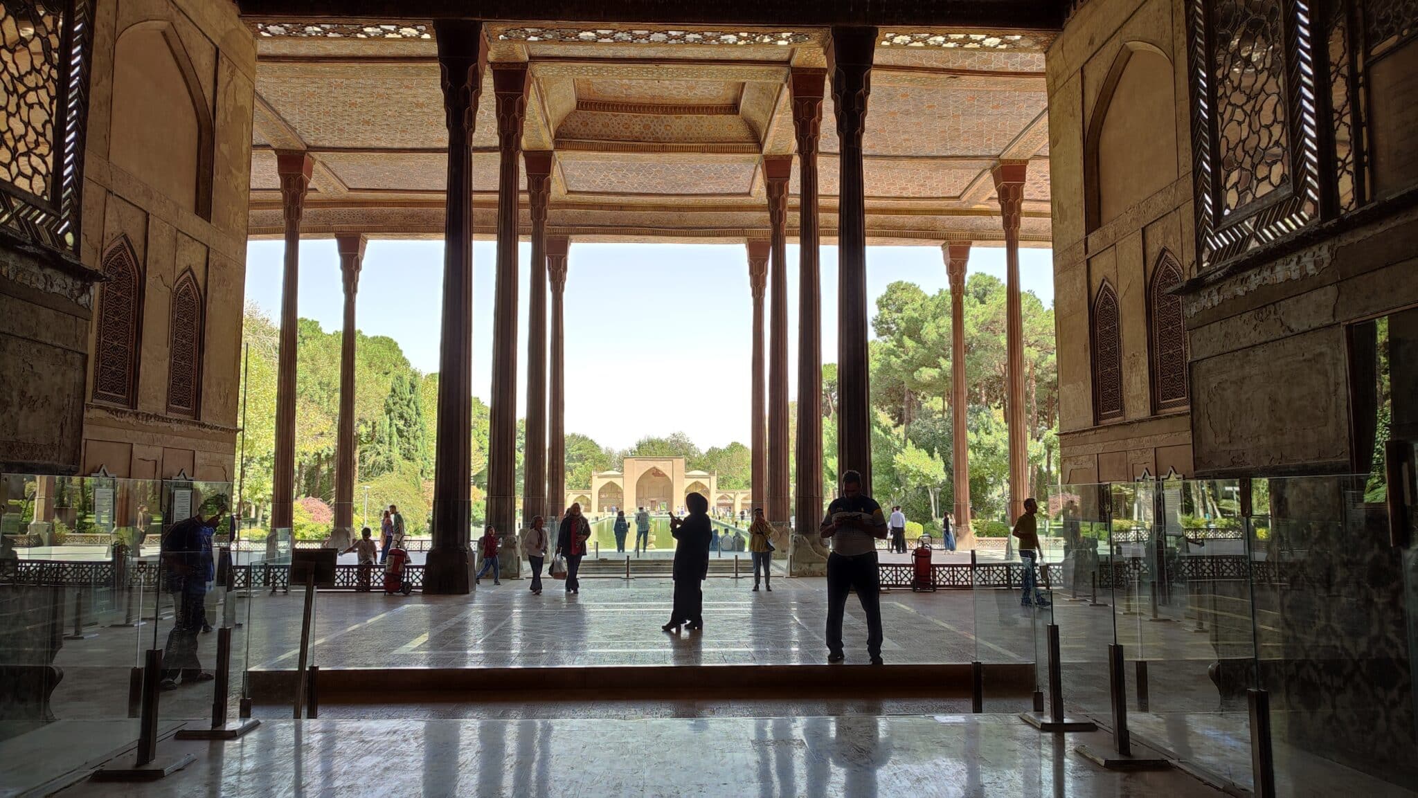 این کاخ 20 ستون دارد، اما به خاطر تصویر ستونها در آب به کاخ چهل ستون شهرت یافته است.