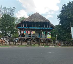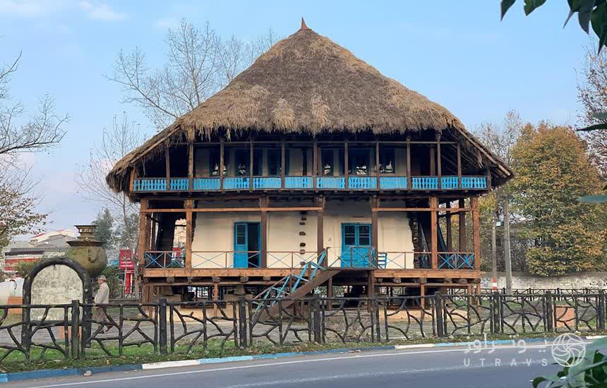 کلبه روستایی در بوستان ملت رشت نخستین الگوی خانه های معماری بومی شرق گیلان است که از روستای کنف گورابی و در مکان جدید دوباره چینی شده است به این خانه ها با سف بلند و گالی پوش خانه های دارفانی می گفتند