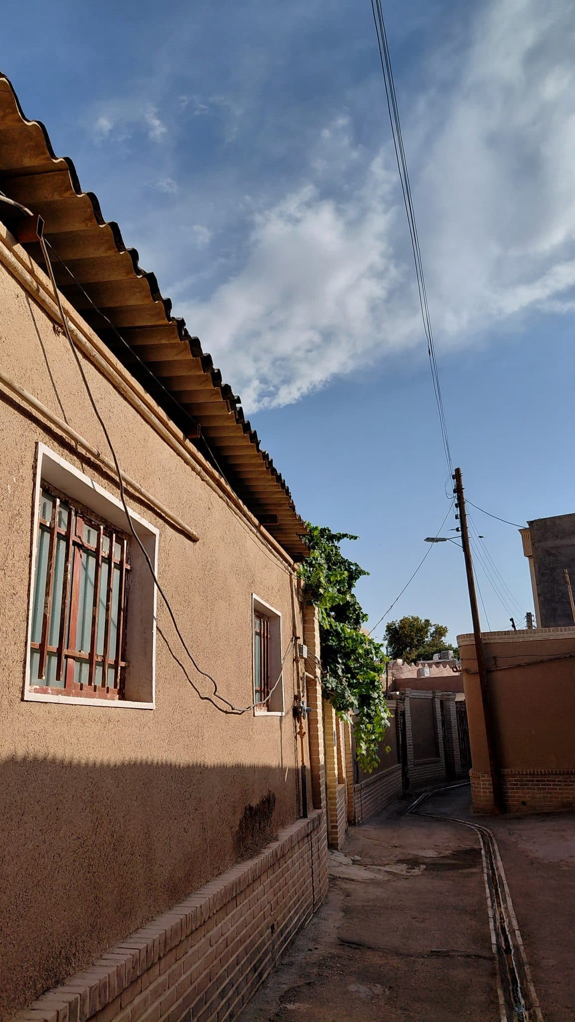 یه کوچه باریک قدیمی که چندین پیچ دارد و تو در تو هست.. با دیوار های قدیمی و کاهگلی و با درب خانه های قدیمیه اهنی و چوبی